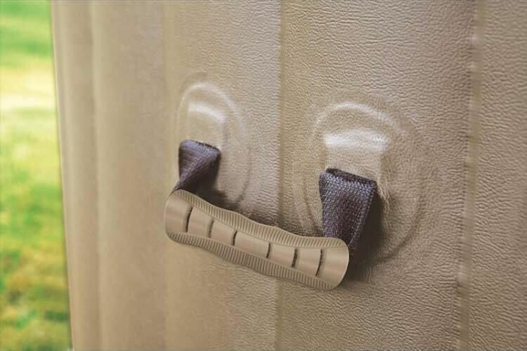 De opblaasbare spa heeft een ingebouwde opblaaspomp, zelf blazen of pompen is dus niet nodig. Daarnaast zijn de wanden van de opblaasbare spa gevuld met lucht. Lucht werkt isolerend waardoor het warme water makkelijker op temperatuur wordt gehouden, helemaal in combinatie met het meegeleverde isolerende afdekzeil en grondzeil.