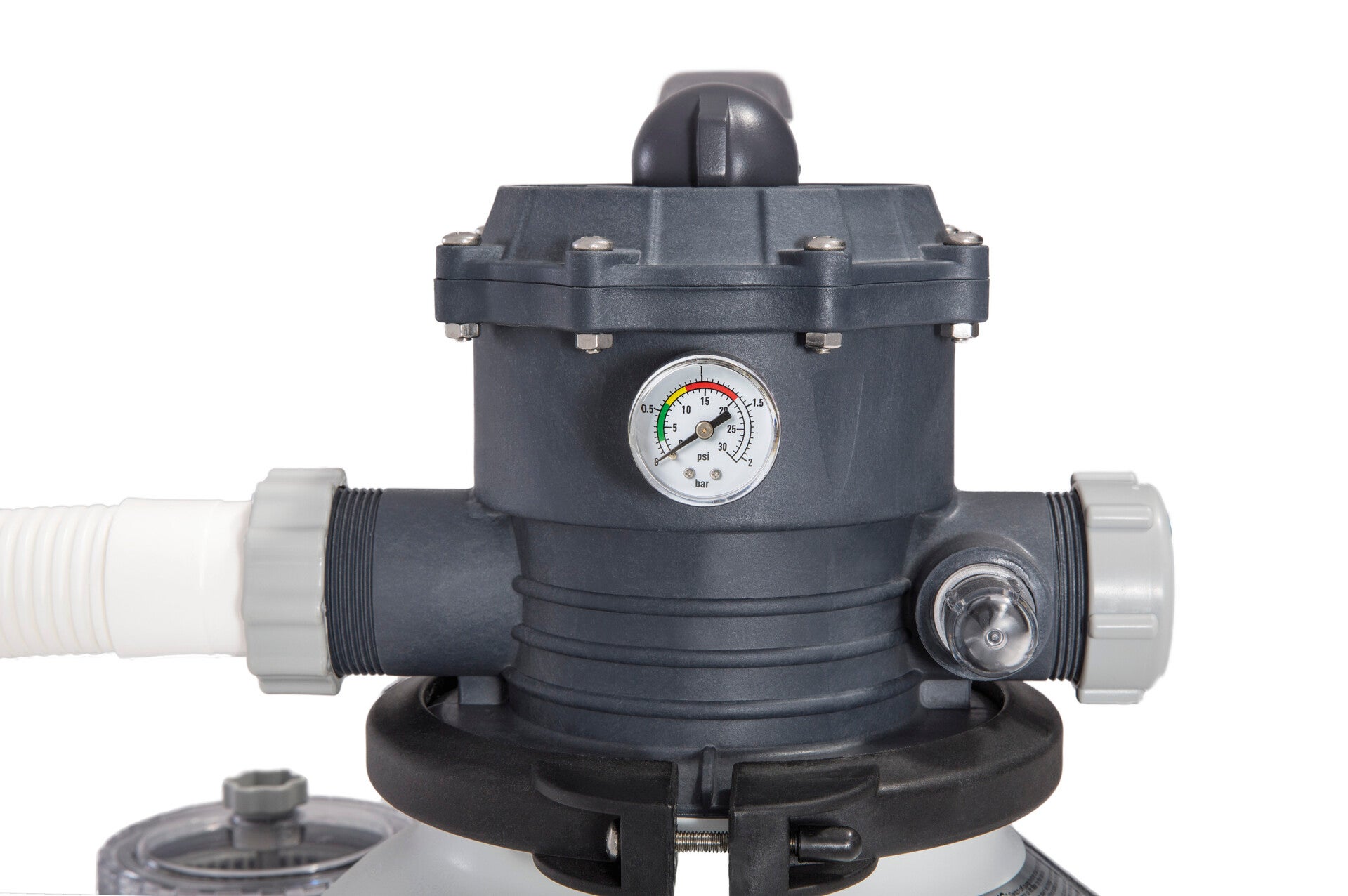 Al het vuil dat groter is dan een zandkorrel wordt gefilterd. Deze grote Intex zandfilter filtert circa 10.000 liter per uur. De pomp kan je vullen met zand, glas of bollen en geeft je kristal helder water en filtert al het vuil dat groter is dan een zandkorrel.