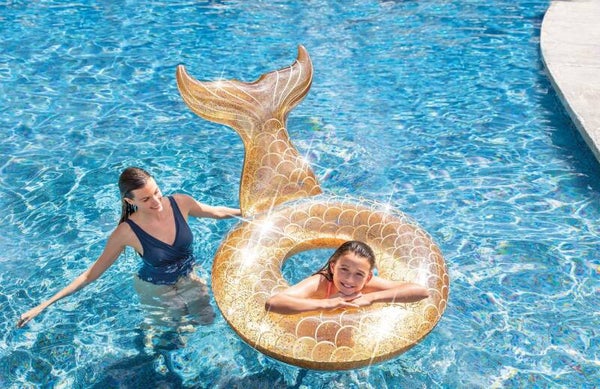 Altijd al een echte zeemeermin willen zijn? Met de Intex zeemeermin zwemband is dat zo geregeld. Deze opblaasbare zeemeerminnenstaart is niet alleen prachtig om te zien, je kunt er bovendien heerlijk mee in het water dobberen. Bovendien zitten er echte glitters in, waardoor je zult schitteren in de zon. Wat een plaatje!